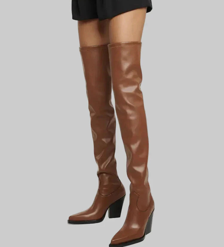 Daphne - Térd fölötti magassarkú csizma bőrhatással