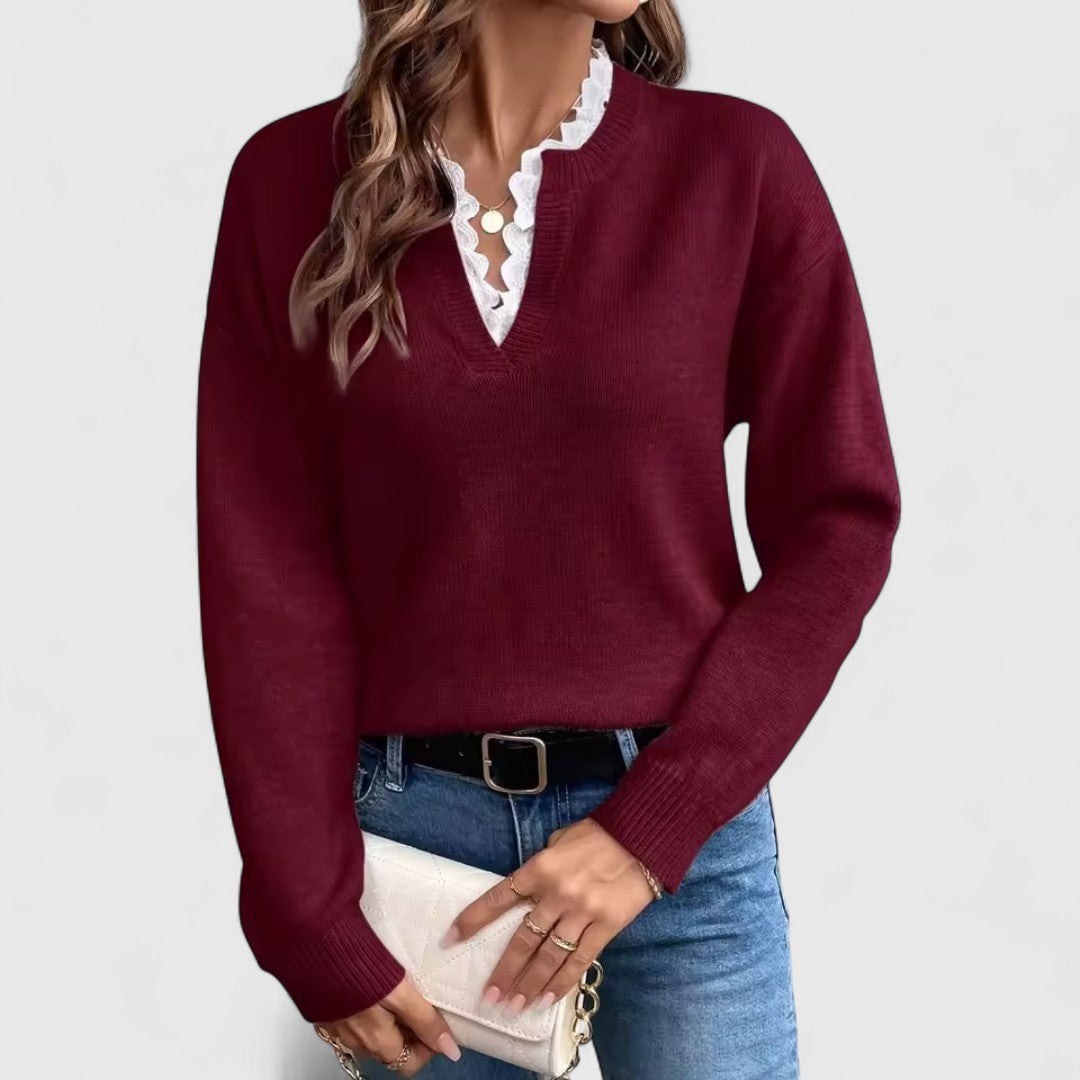 Boldogság - Csipkés Blúz V-nyakkal Elegáns Kényelemmel