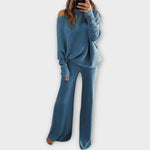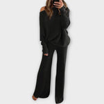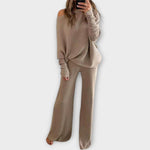 Kötött szett széles nadrággal és laza pulóverrel