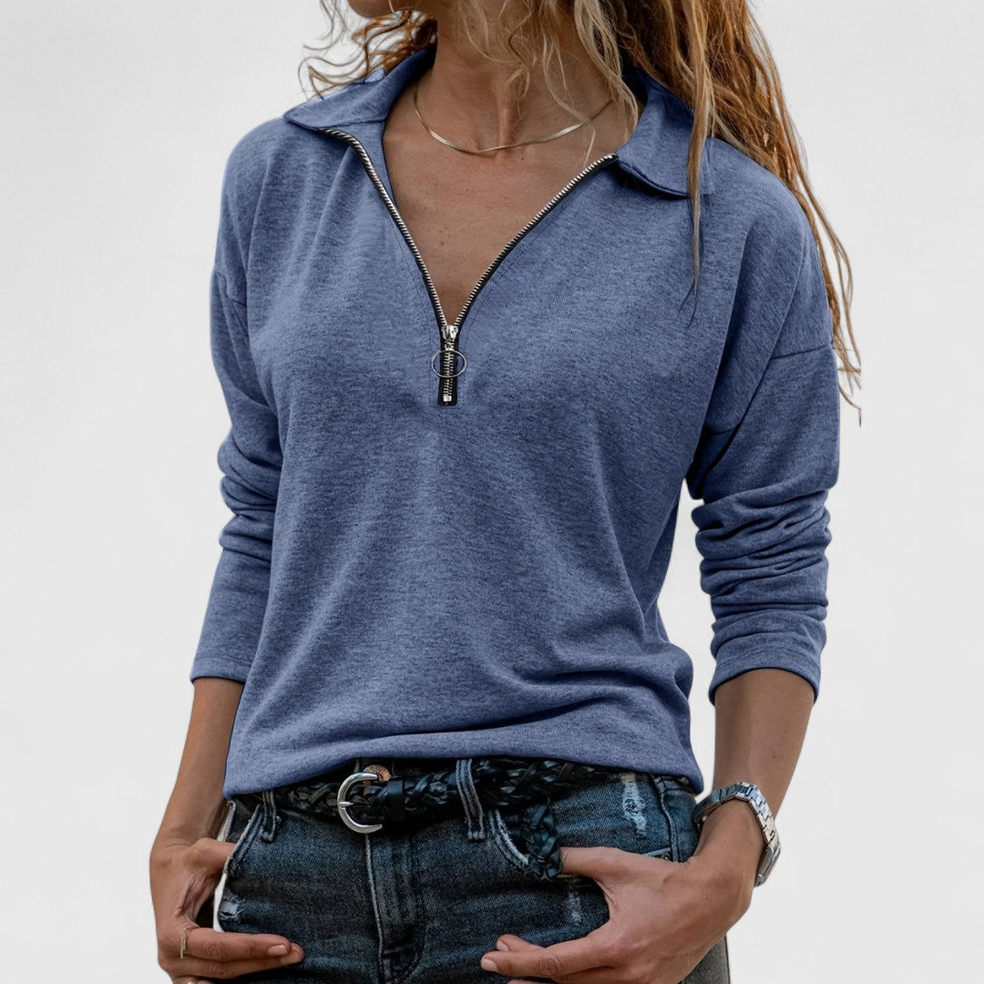 Krisztina - Női pulóver fél cipzárral, laza fazonnal