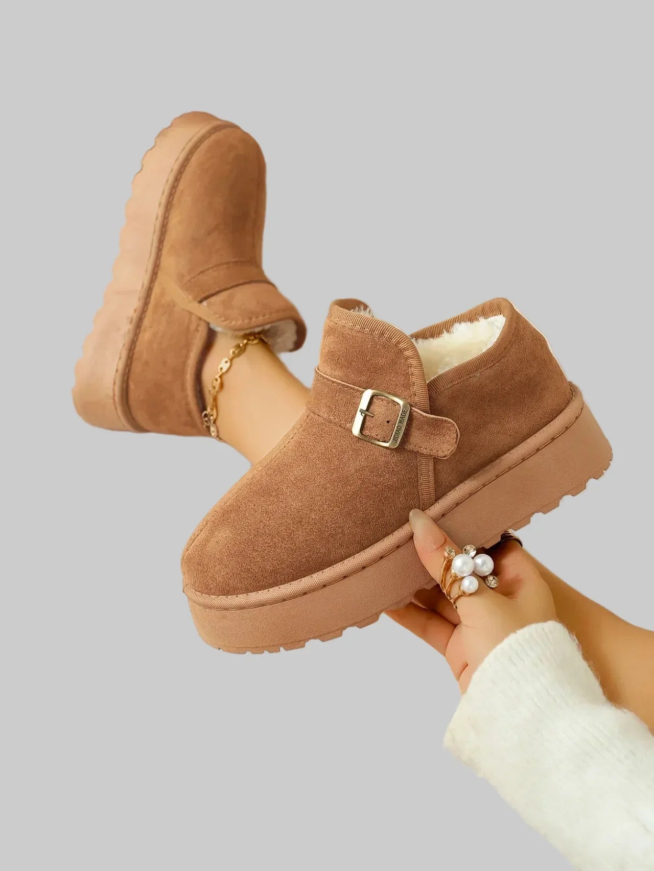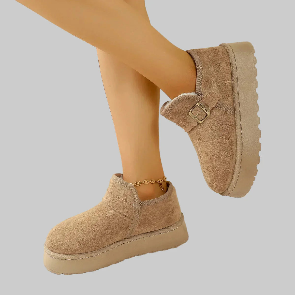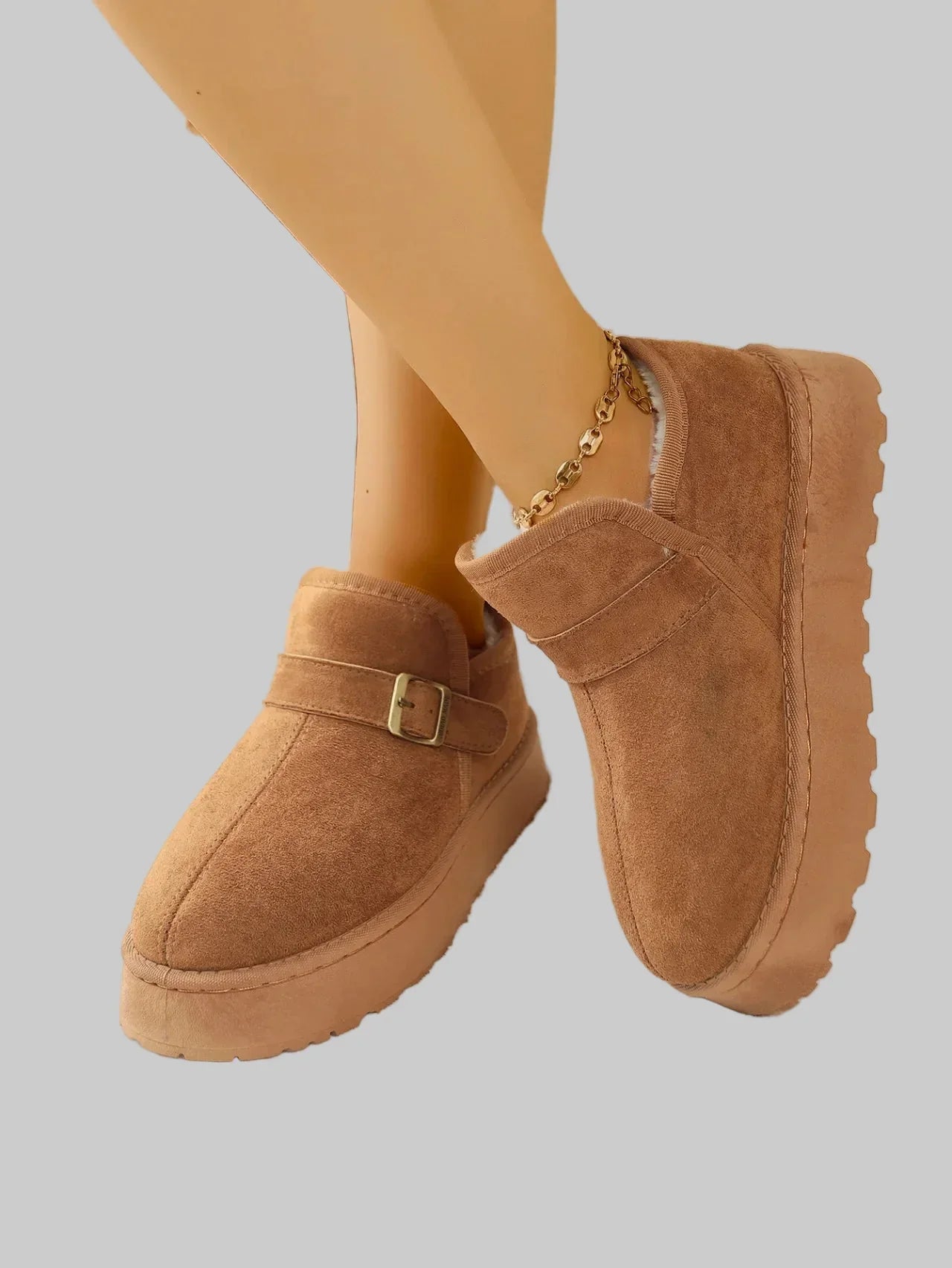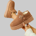 • További Stílusos Részlet: A állítható csat és a velúr hatású alacsony szár elegáns részletet ad a népszerű mini platform dizájnhoz, így a csizmák sokkal ápoltabbnak tűnnek, mint a hagyományos papucsok.