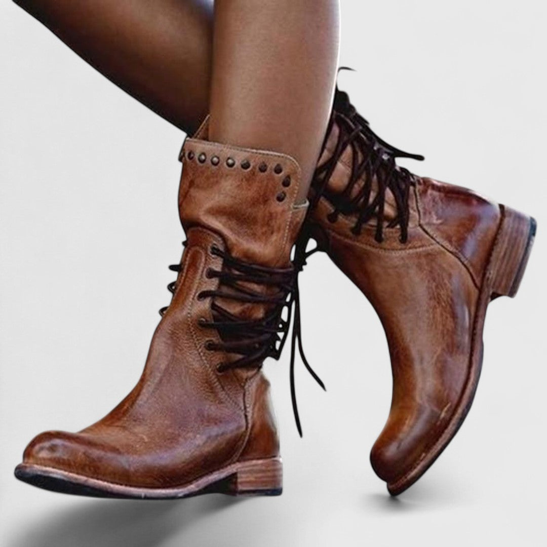 Theano - Bőr bokacipők fűzővel, időtálló stílusban